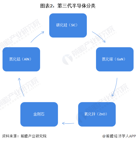 第三代半导体主要包括碳化硅(SiC)、氮化铝(AlN)、氮化镓(GaN)、金刚石、氧化锌(ZnO),其中,碳化硅(SiC)和氮化镓(GaN)并称为第三代半导体材料的“双雄”,是第三代半导体材料的典型代表。