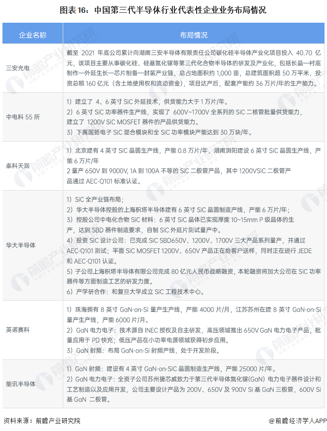 经过初期的发展,第三代半导体迅速在新能源汽车、5G基站、PD快充等领域应用,市场规模增长迅速。同时,行业内的竞争也逐渐加剧。为了迎合市场需求,抢占市场地位,国内主流半导体企业均加强在第三代半导体产业的布局,扩充第三代半导体的产能。其中,代表性的主流企业有三安光电、中电科55所、泰科天润等。