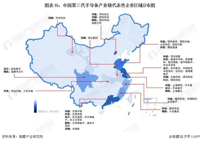 1、区域竞争格局:江苏省第三代半导体代表性企业分布最多