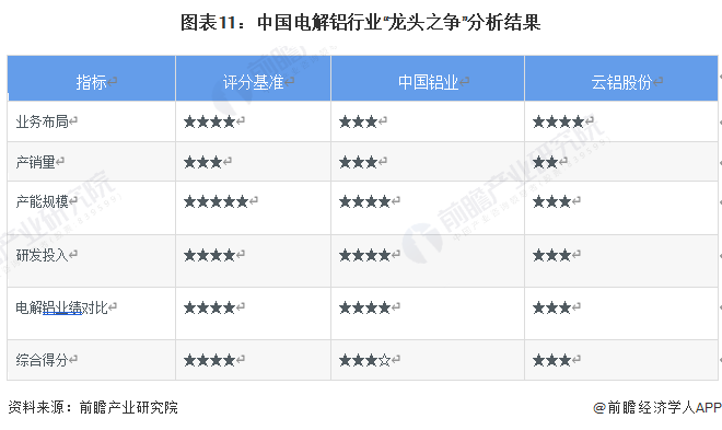 在电解铝行业中,电解铝的产能规模决定了电解铝的生产能力,而电解铝业绩能反应公司的经营概况。基于前文分析结果,前瞻认为,中国铝业因在产销量、产能规模方面占有优势,目前是我国电解铝企业中的“龙头”。