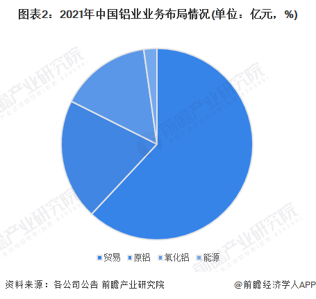 2021年,中国铝业原铝业务营业收入为726.4亿元,占比21%,氧化铝营业收入占比15%,云铝股份铝材加工行业营业收入为220.9亿元,占比53%。