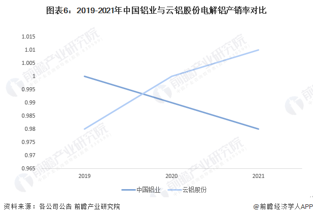 产销率方面,2019-2021年,中国铝业与云铝股份产销率均较高,2021年中国铝业产销率为0.98,云铝股份产销率为1.01。