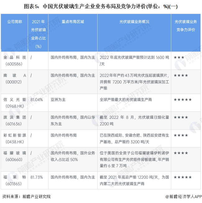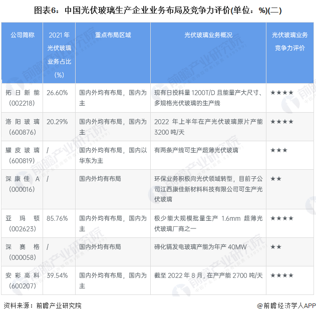 4、中国光伏玻璃行业企业布局及竞争力评价