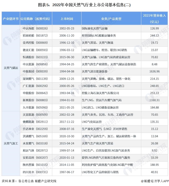 本文核心数据:天然气行业上市公司汇总,天然气行业上市公司业务布局