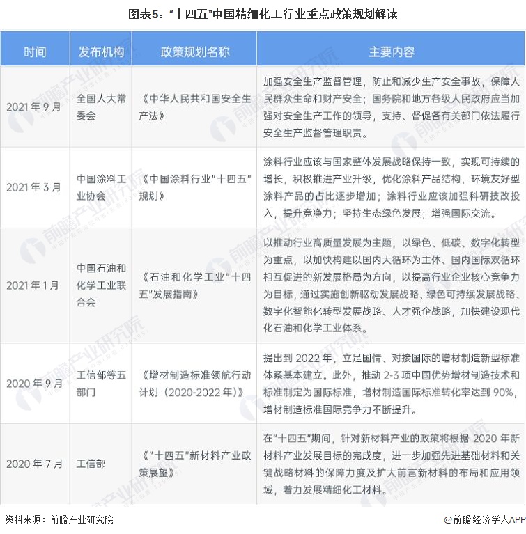 更多本行业研究分析详见前瞻产业研究院《中国精细化工行业市场前瞻与投资战略规划分析报告》,同时前瞻产业研究院还提供产业大数据、产业研究、政策研究、产业链咨询、产业图谱、产业规划、园区规划、产业招商引资、IPO募投可研、IPO业务与技术撰写、IPO工作底稿咨询等解决方案。