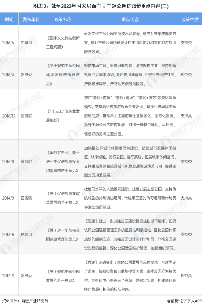——国家层面主题公园政策汇总