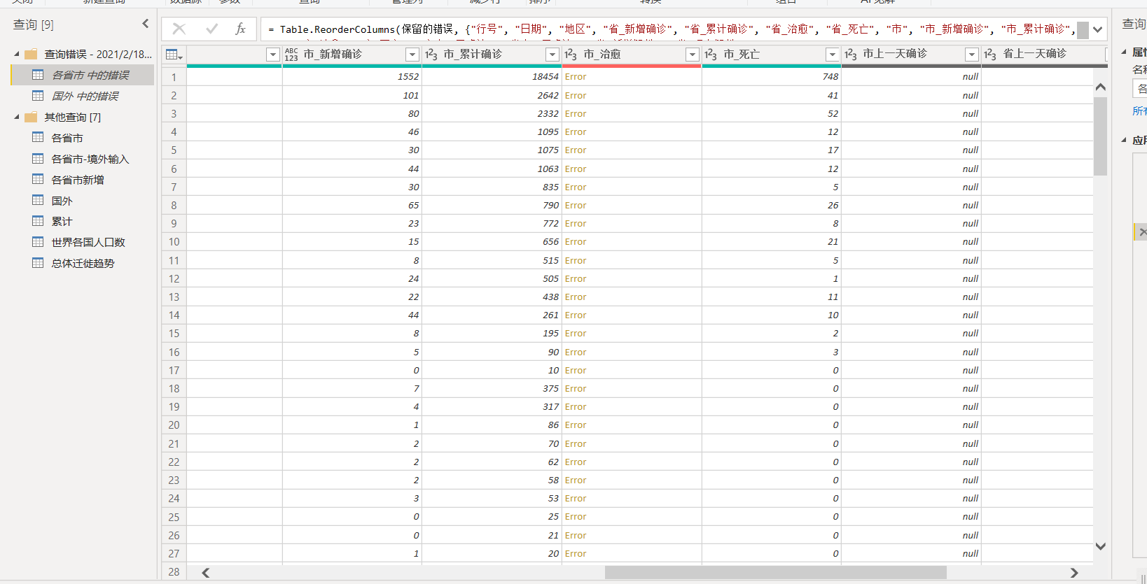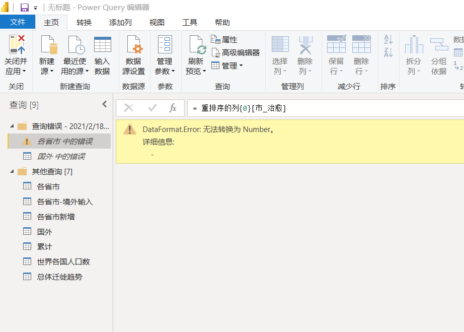PowerBI导入数据后显示错误: