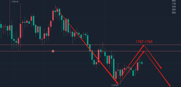 建议黄金价格反弹上方1767-1769分批空,止损1777,目标1757-1758;(以上建议仅供参考,盈亏自负,做单严格设置好止损止盈)