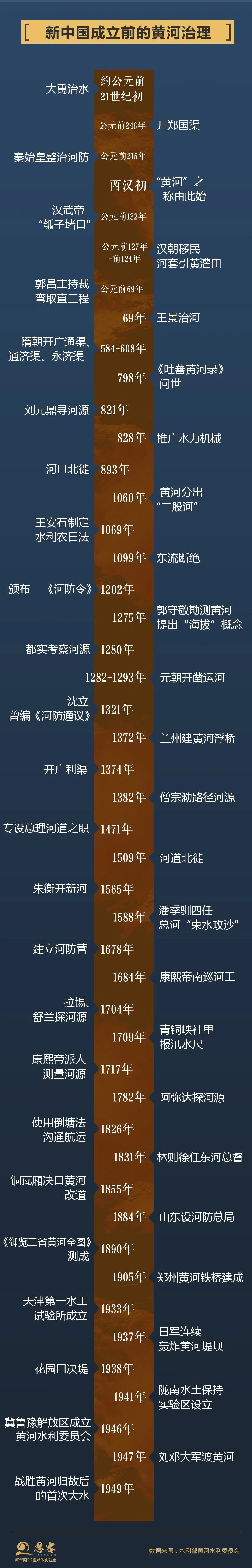 从古至今,治理黄河一直都是安民兴邦的大事。从大禹治水到明代潘季驯“束水攻沙”,从汉武帝“瓠子堵口”到康熙帝把“河务、漕运”刻在宫廷的柱子上……中华民族始终在同黄河水患作斗争,甚至寄望于河神祭祀、镇河神兽。但长期以来,受生产力水平、社会制度、人为破坏等主客观条件的制约,黄河屡治屡决的局面始终没有得到根本改观,黄河沿岸人民的美好愿望一直难以实现。