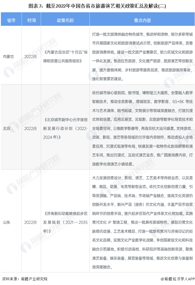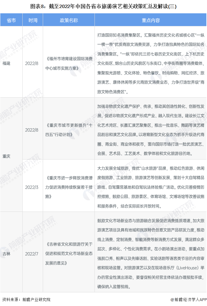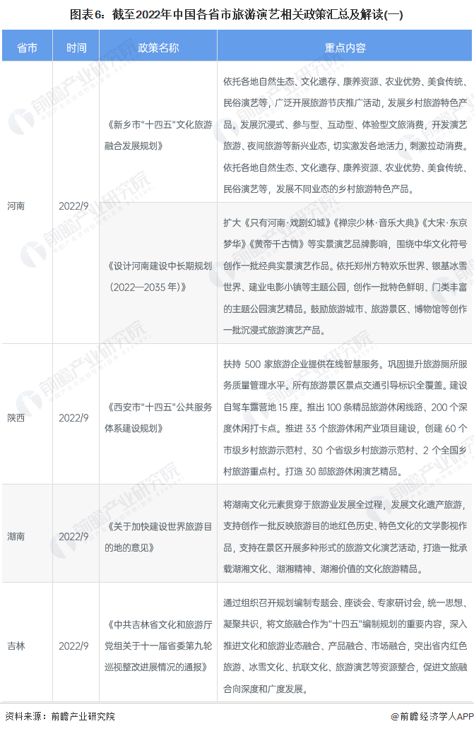 近年由于新冠疫情影响,旅游演艺产业有所停滞。但随着疫情有序恢复,政府颁布了鼓励旅游演艺的文件,例如给演艺场所进行适当补贴,给消费者提供场所折扣优惠等,给旅游演艺有较好的鼓励和推动作用。