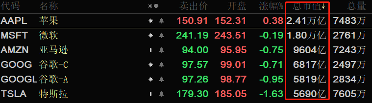 美国股票是一个“顶端优势”特别明显的市场,华尔街扎堆买入数量有限的知名个股,然后不断吸引新资金进入抬高股价。随着这些个股的总市值不断放大,占据三大股票指数的比重也不断抬升,最终,由数只股票价格走势主导的整个美股市场形成。基于此,美股市场的持有逻辑是:选择那些大市值的高价股。以总市值来看,苹果公司以2.41万亿美元位列榜首,其次是微软、谷歌(A+C)、亚马逊、特斯拉。我们以苹果为例来进行分析。