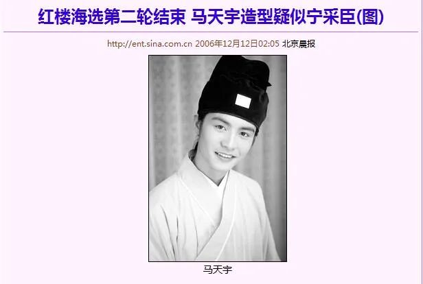 光是宝玉组海选被毙掉的,就有两位是今天的腕儿,马天宇和陈晓。马天宇有点特殊,他来“红楼”之前已经在“好男儿”里镀了一层金,不算素人。