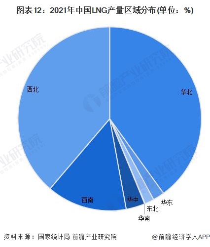 华北、西北、西南地区是我国液化天然气主产区,2021年我国华北地区、西北地区、西南地区LNG产量分别占比40.%、39%与14%。