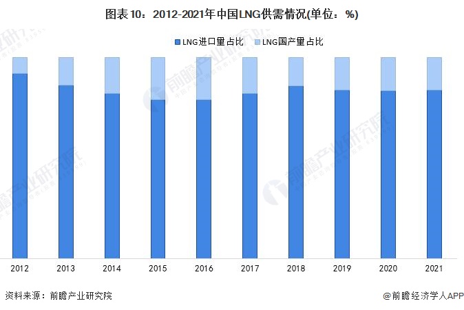 整体来看,液化天然气(LNG)市场供需在“增储上产七年行动计划”的持续推进下,国内LNG产量快速增长,LNG进口占比近年来相对稳定。2021年我国LNG需求量中进口占比83.71%,与2020年基本持平。
