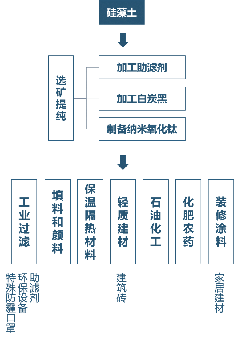 硅藻土具有多孔、松散、吸附性强、渗透性好、质轻、细腻等优点,主要作为装修涂料、墙面材料、过滤材料、功能填料、载体材料,广泛用于生态家装和工业过滤领域。