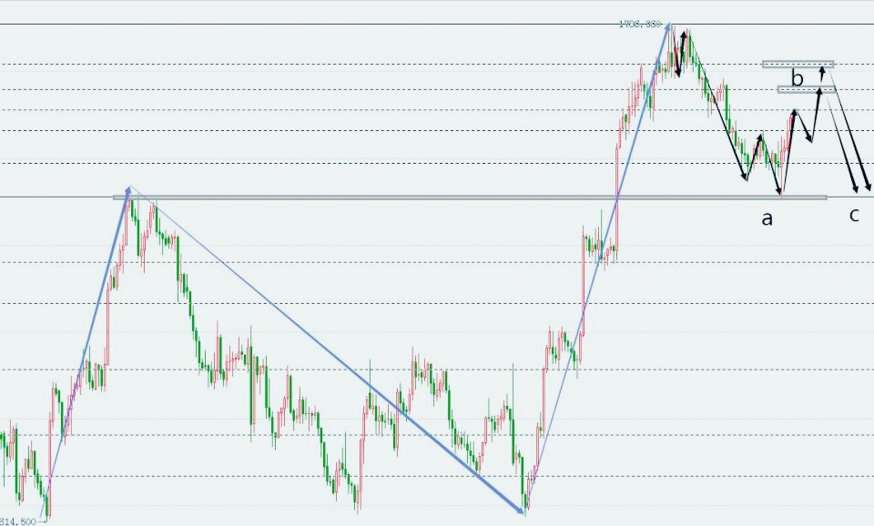 黄金昨日完成了最后一跌,终于赶上了白银的步伐,至此美盘开始的反弹也就顺理成章,短线1786——1726的回落暂时告一段落,承接凌晨的上行多头还会继续反弹。黄金从1786——1726的第一阶段回落已经到位,回踩到前期上破的颈线位,日内将再次去拓展反弹空间。按照波浪交易系统推演,由于从1786开始的下行出现次级别的5波推动走势,意味着短期将会呈现三波abc调整形态锯齿形,目前a浪下跌已经完毕,当前反弹属于b浪。4小时图经过周初的整理,昨日放量后启稳回升,下探的低点也基本在此前强调的支撑区域,一是突破口的支撑17312-1730.二是黄金分割点0.382的支撑带在1722.整体维持在黄金分割点0.382之上启稳回升。4小时或许要开始慢慢收复上扬,突破前期高点之后。目前还处于构造上升结构当中,今日操作依托1726做多头防守点回踩做多。1小时图下探回升重新站上1740-1750上方,亚盘若是强势的话,会直接先行上扬,操作上避免踏空点位。综上所述,黄金今日操作思路上建议回调低多为主,反弹高空为辅,上方重点关注1768-1773一线阻力,下方短期重点关注1745-1740一线支撑。老师与昨晚提示学员再次在1736一线布局长线多单上看1800上方,若黄金意外再次跌破1725止损,再做重新规划.日内短线操作,实盘现价给出!