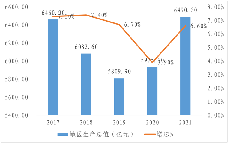 图1 2017-2021年石家庄市地区生产总值及增速