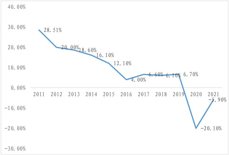 图5 2011-2021年石家庄市固定资产投资增速变化情况
