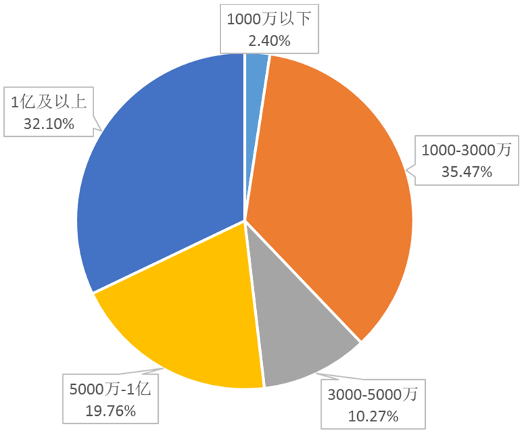根据我院大数据显示,石家庄现有的外来投资企业注册资本呈现出“两头多,中间少”的分布格局。其中,占比较多的注册资本区间为“1000-3000万”和“1亿及以上”,占比分别达到38.26%和28.04%。