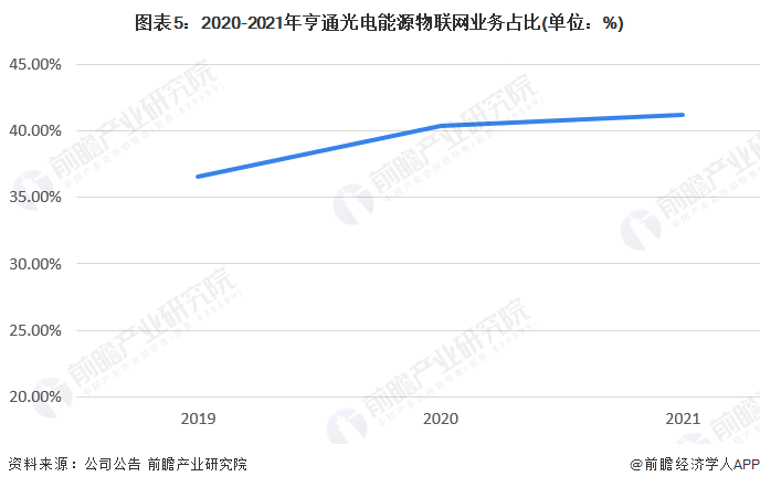 随着国家大力发展物联网、新能源等行业,公司能源物联网营收占比提升较快,从2019年的36.52%,增长至2021年的41.17%。