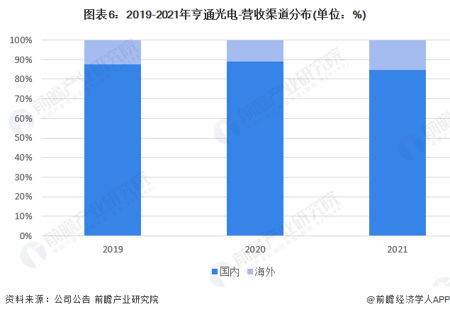 目前,亨通光电的业务主要集中于国内市场,但是国内业务收入占比逐渐下降,2021年国内业务占比为84.79%,较2020年的88.87%,下降4.08%。