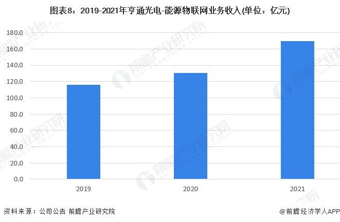 从能源物联网业务的经营情况来看,亨通光电的能源物联网业务收入稳步增长,2021年超过160亿元,达到169.9亿元,同比增长30.09%。