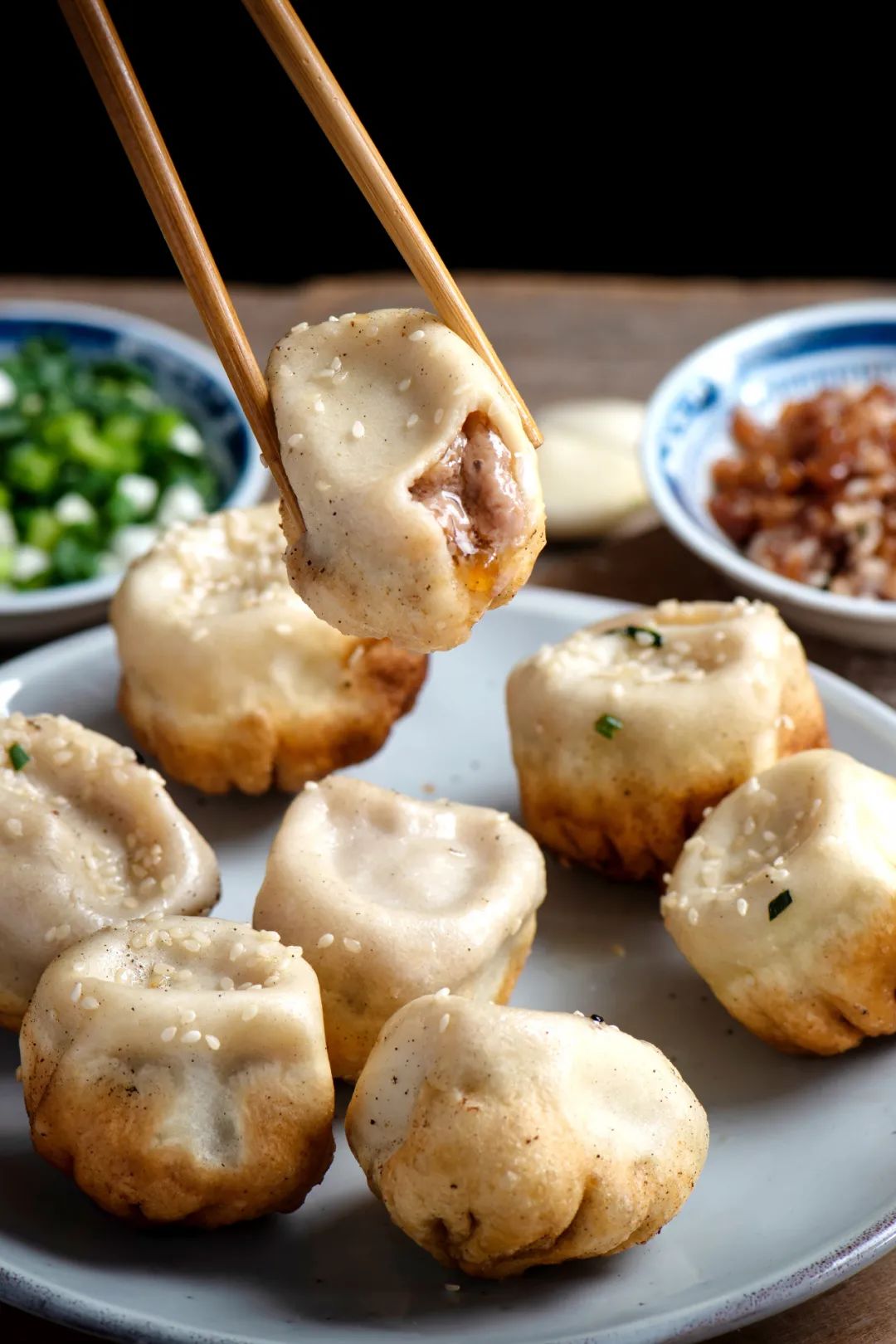 吃生煎的仪式感:侧面嘬一口,轻轻吹热气。