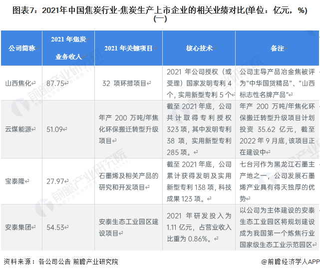 目前,我国以焦炭相关行业为主营业务企业较多,并且焦炭产业链上下游企业较为庞大。其中焦炭制造环节主要有山西焦化、云煤能源、宝泰隆、中煤能源、陕西黑猫等。
