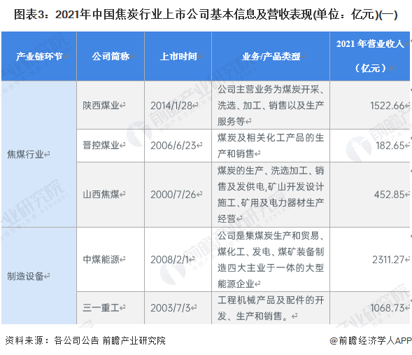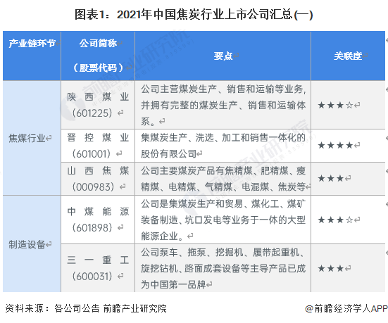 行业主要上市公司:山西焦化(600740)、云煤能源(600792)、宝泰隆(601011)、中煤能源(601898)、陕西黑猫(601015)等