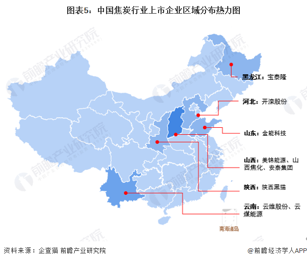 从区域分布来看,我国焦炭行业代表性上市企业主要分布于山西省与云南省,其中,山西省拥有3家上市企业;而山东、河北、陕西、黑龙江等省市也均有上市企业分布。