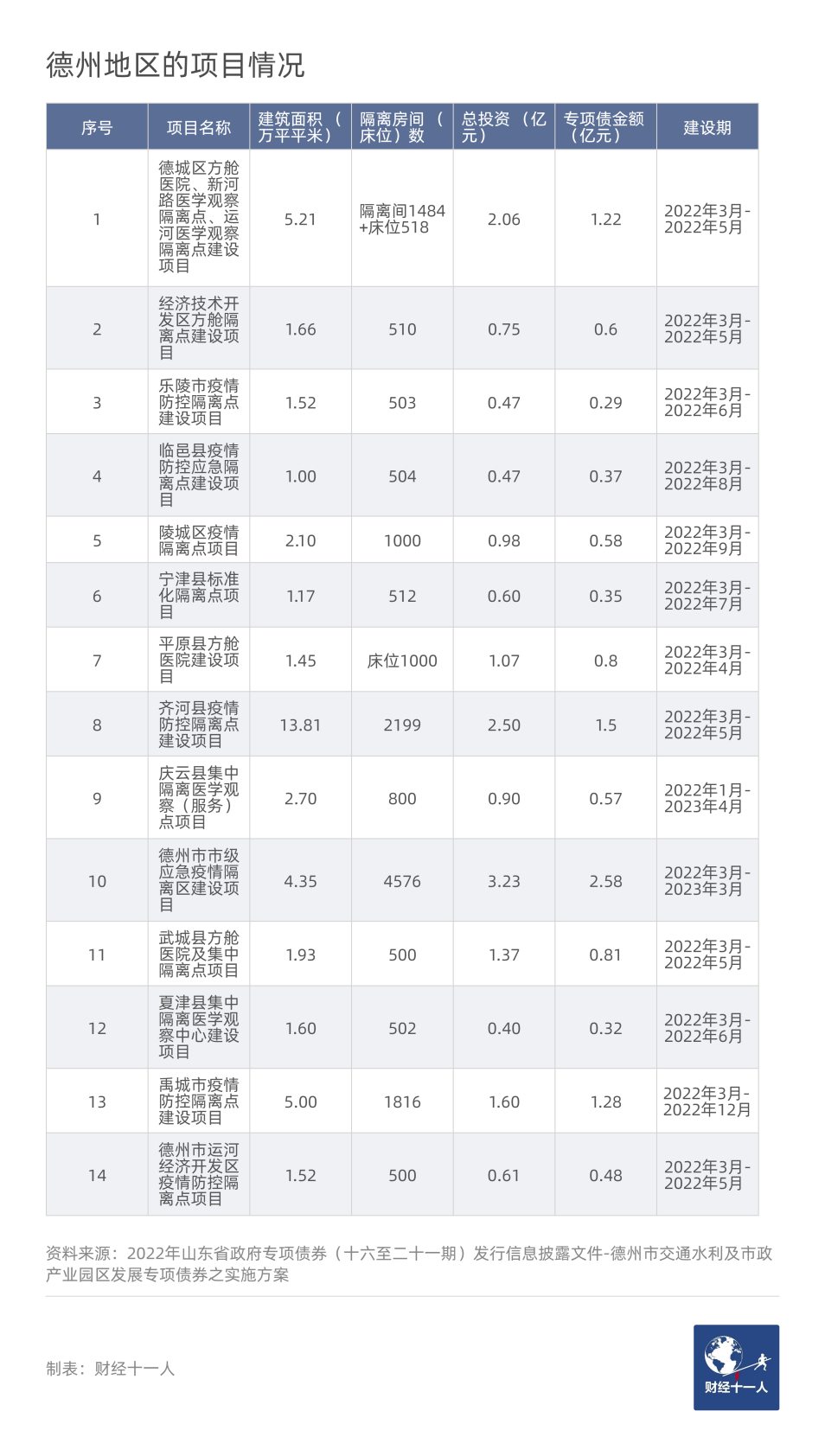表13: 德州地区永久性方舱医院、隔离点项目情况