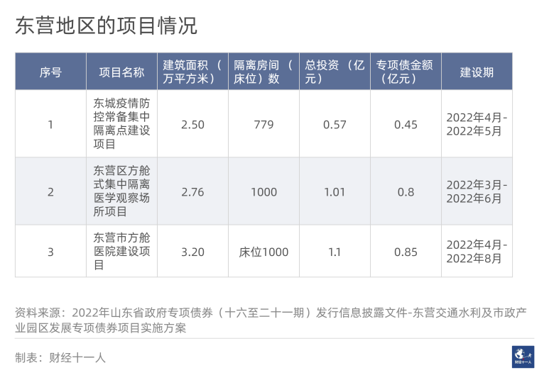 表5: 东营地区永久性方舱医院、隔离点项目情况
