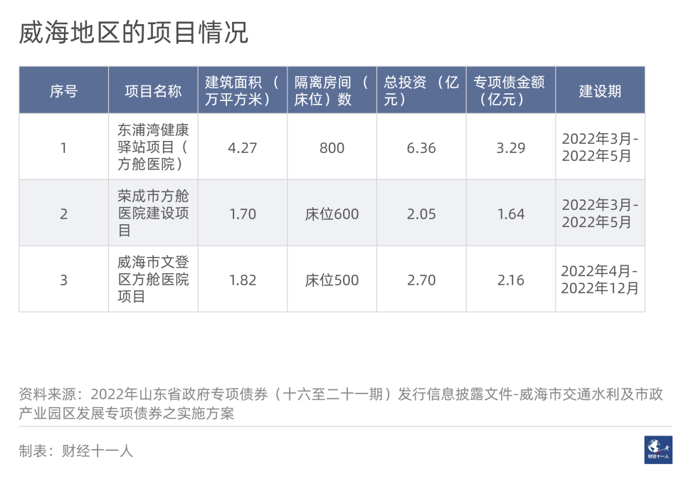 表10: 威海地区永久性方舱医院、隔离点项目情况