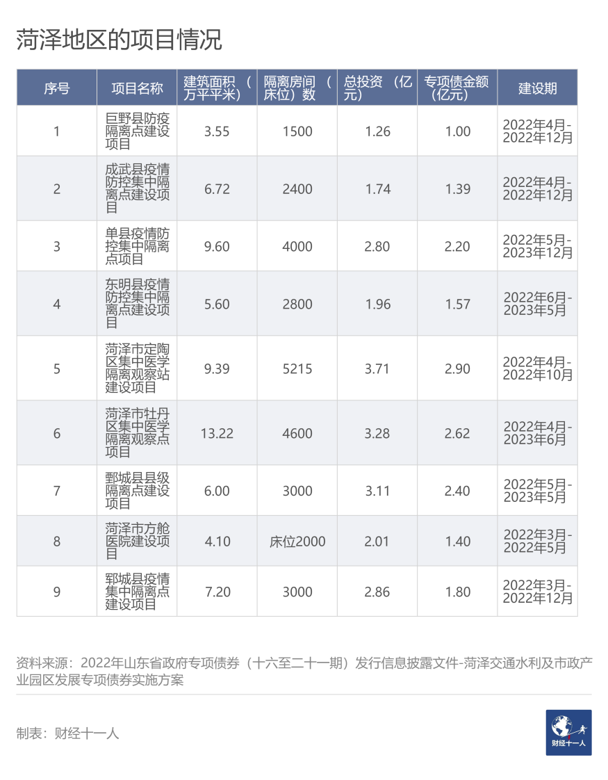 表16: 菏泽地区永久性方舱医院、隔离点项目情况
