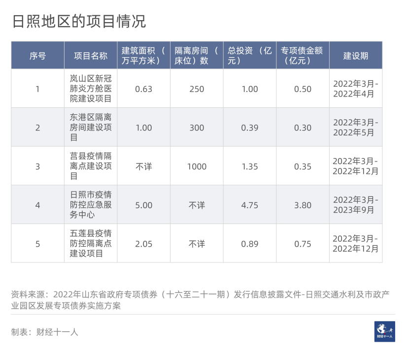 表11: 日照地区永久性方舱医院、隔离点项目情况