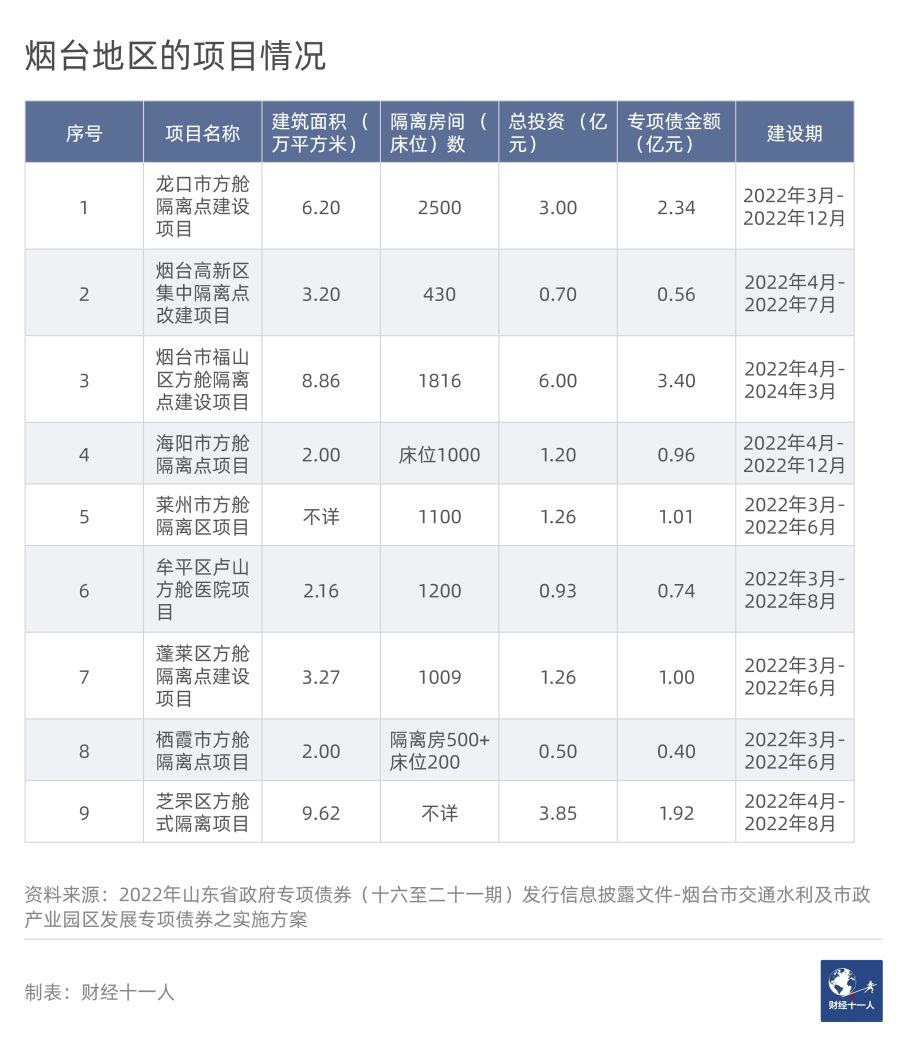 表6: 烟台地区永久性方舱医院、隔离点项目情况
