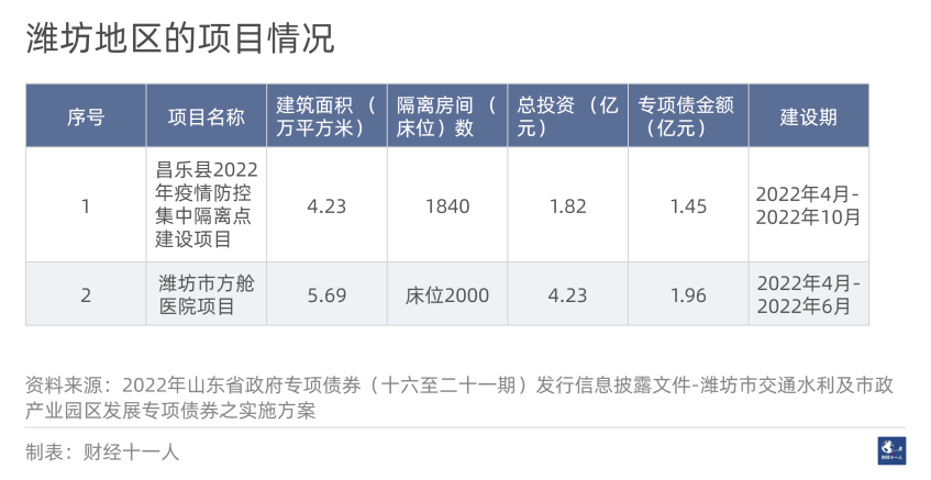 表7: 潍坊地区永久性方舱医院、隔离点项目情况