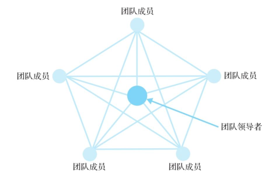 一些小型团队,成员合作时间较长,彼此比较熟悉,价值观和行为习惯比较一致,团队领导者和团队成员之间的权力连接不完全是纵向“命令-服从”关系,而是有了一些平等合作、相互协商的属性。这种团队的内部存在协调彼此行为的共识性权力(大家的行为受共同的价值观以及互相约定的支配;这一概念我们后面还会提及),它会在一定程度上替代强制性权力。在这种情形下,权力连接是网络状的结构(见图8)。