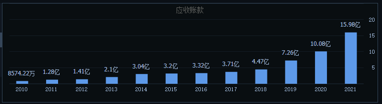 深度绑定房地产之后,老板电器营收端获得了一定的提升,但公司应收账款余额也在一路攀升。数据显示,2017年-2021年,老板电器应收账款余额由3.71亿元增长至15.98亿元,四年内增幅超过4倍,远超过同期营收增速。
