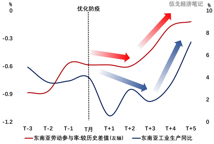 来源:WIND,Our World in Data,政府网注:国别含越南、韩国、日本、新加坡、泰国、马来西亚。相应地,在各国管控优化的初期,无论供给端还是需求端,制造业等短期难免不受负向冲击。但约1个季度后,各国实体部门则迎来显著修复。