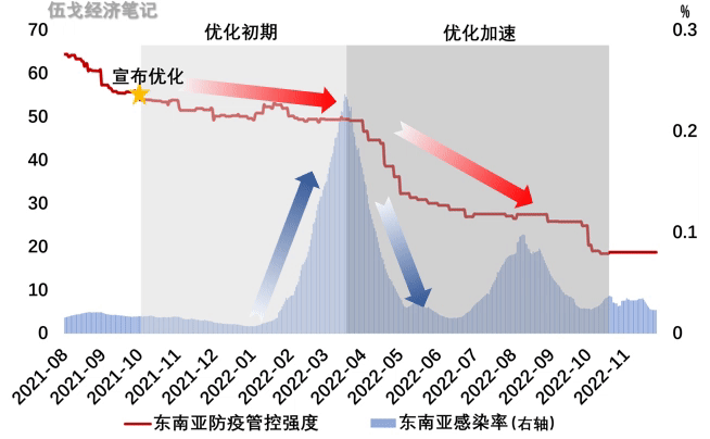 当前我国正处在防控优化和疫情抬升交织的特殊时期。国际来看,各国防疫优化都经历过类似的曲折前行阶段。特别是亚洲经济体,采取了更为渐进的优化策略。其优化初期,正值去年秋冬季,大都面临疫情的显著恶化,有的甚至还曾边际收紧政策。不过,待开春疫情峰值稍过,各国管控优化过程全面提速。