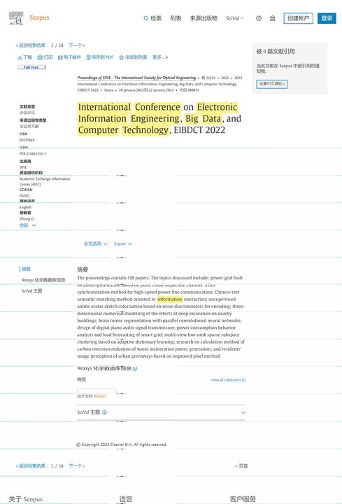 EIBDCT 2022 已被SPIE出版 | EIBDCT 2022 EI 检索历史 | EIBDCT 2022 Scopus 检索历史 |