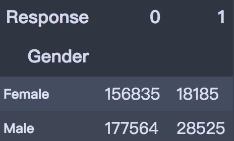 训练集共有381109笔客户资料,其中感兴趣的有46710人,占比12.3%,不感兴趣的有334399人,占比87.7%。