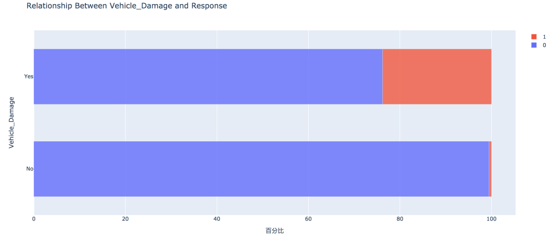 - 是否响应:平均来看,客户对车辆保险感兴趣的概率为12.25%。