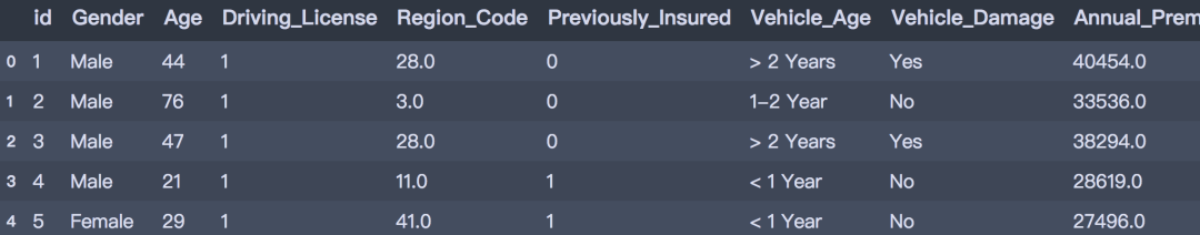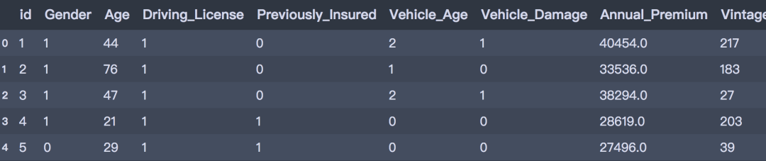 为了预测客户是否对车辆保险感兴趣,我们需要了解一些客户信息 (性别、年龄等)、车辆(车龄、损坏情况)、保单(保费、采购渠道)等信息。