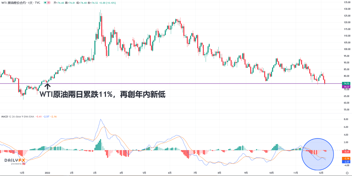 WTI原油两日累跌11%,2022年以来最低!