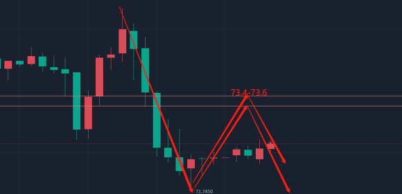 我们看到昨天油价整体走出了“N”字形态,价格在欧盘拉高上方75.3形成跳水,美盘和午夜阶段油价也是跌到了下方71.7附近的位置,虽然尾盘出现了反弹,但是价格整体也是运行在73美金下方的位置,昨天油价出现这么大幅度的跳水,主要原因还是库存大增在加上经济衰退担忧拖累油价所以导致油价下跌,面对这样的行情,今天如何操作,简单进行一个分析;