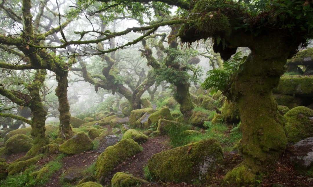 英国德文郡,维斯特曼森林(Wistman's Wood)国家自然保护区。© Mike Read/Alamy