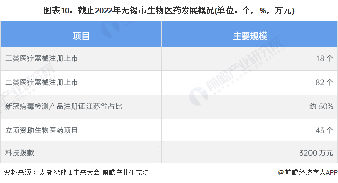 根据2022年8月无锡召开的太湖湾健康未来大会公布的数据显示:截至目前,无锡共有18个三类医疗器械、82个二类医疗器械完成注册上市,其中卡尤迪、奇天基因自主研发的2款新冠病毒核酸检测产品获国家药监局批准注册上市,约占江苏省获批新冠病毒检测产品注册证的50%。2021年无锡共立项资助生物医药项目43个,科技拨款超过3200万元。