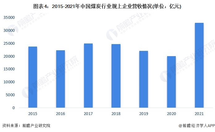 2015-2020年,我国煤炭行业规上企业的营收保持在2万亿以上的水平,但整体呈下降趋势,主要是由于我国近几年能源结构转型所致。2021年,我国煤炭行业规上企业的营收约为32897亿元,同比增长58.3%,创下历史新高。